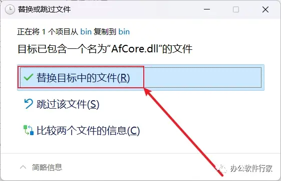 19.选择“替换目标中的文件”