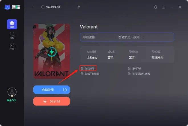 游戏不稳定,经常会有进不去的问题,在下载游戏之前我们要先打开暴~喵~搜索框搜瓦罗兰特后加速,选择入口