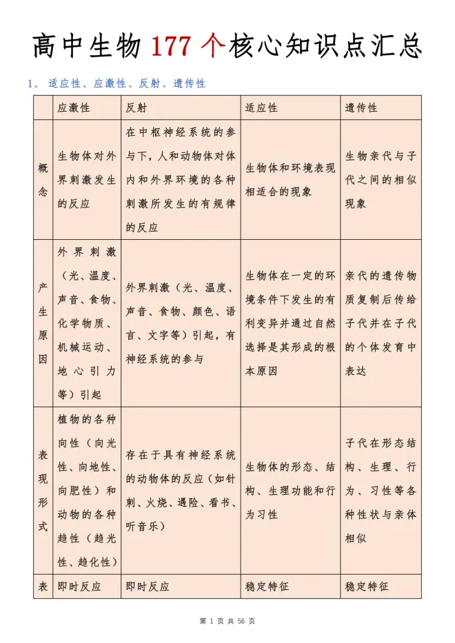 🔆 今天给大家分享《高中生物177个核心知识点》,其中包括了必修+选修的核心知识点,如果你生物成绩怎么也提不上来,就一定要先搞定这177个核心知识点。