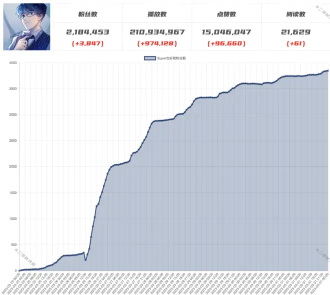 预计于2023-04-21达成三百二十万粉