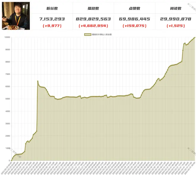 预计于2023-04-09达成六百四十万粉