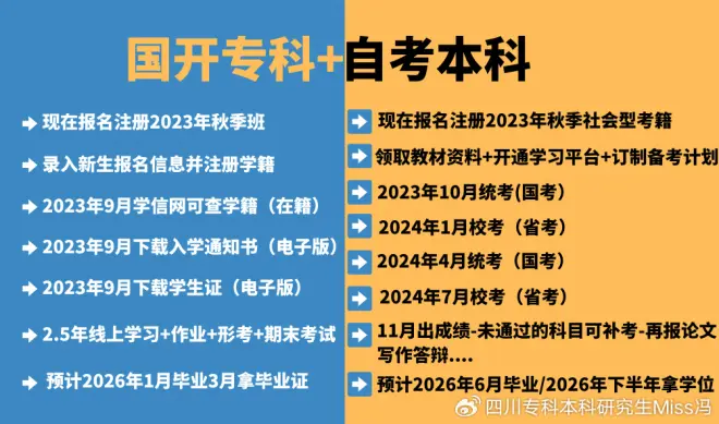专本套读=国家开放大学专科+四川小自考本科=3年左右拿专科本科和学位