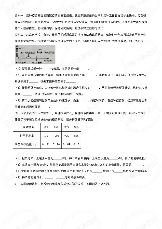 今天老师把初中会考地理、生物结业考试的模拟卷,发给大家做一下,全是2023年刚编写的好的全新试卷,针对地方的中考押题卷,作品是不发布的哦。