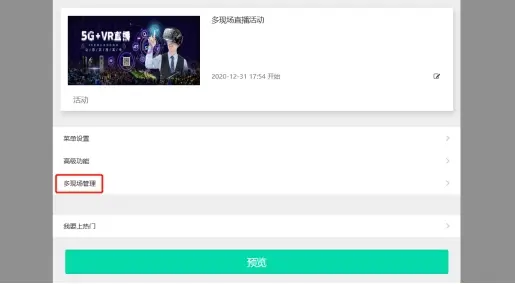 6、在多现场的管理页面上,会比一般的直播活动增加一个“多现场管理”操作项,点击后进入对子现场的管理界面。