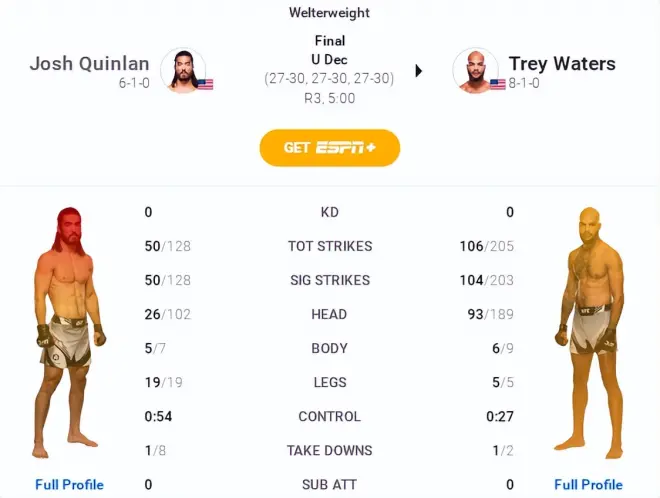 乔希.昆兰 一致判定负于 特雷.沃特斯