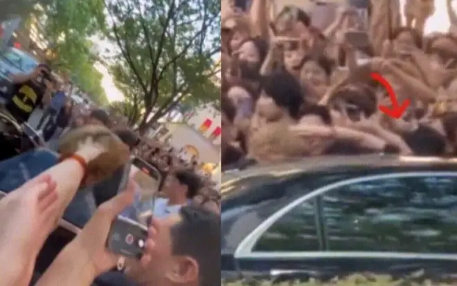 据悉,虽然多名工作人员阻止了蜂拥而至的粉丝,但由于人数太多,所以没能阻止他们。目睹这一瞬间的一位粉丝拍摄了视频,瞬间通过多种社会连接网服务(SNS)扩散。