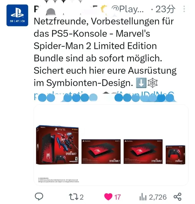 Netzfreunde,PS5 主机 - Marvel 蜘蛛侠 2 限量版捆绑包现已开放预订。 在此处的共生体设计中保护您的设备。 ⬇️🕸️