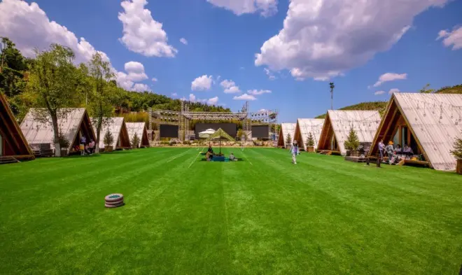 蓝天白云,山川为景,在这个超大的空间里,或是在草坪上歌唱,或是在帐篷里喝下午茶,一切都是那么惬意!
