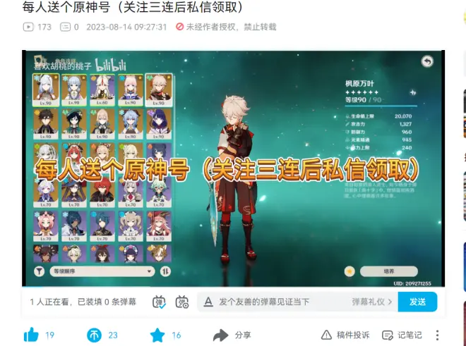 每人送个原神号(关注三连后私信领取)的评论 (共