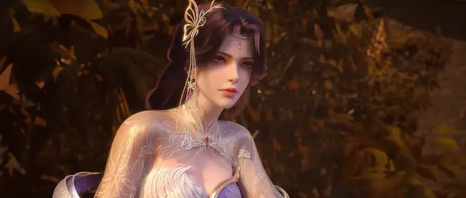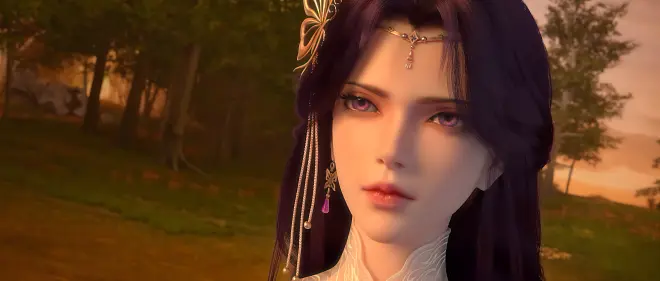 她紫衣飘舞,发丝光亮柔顺,额头饱满莹白,黛眉弯弯,大眼若宝石般,樱唇鲜艳,身段婀娜修长,整个人清丽绝俗,宛若从画卷中走出的仙子,美丽不可方物。