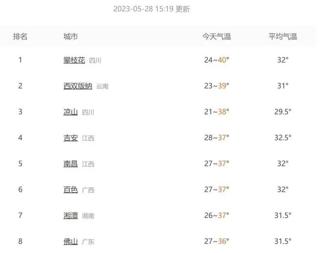 5月30号,四川南部多个地区,包括攀枝花、凉山州等地,持续出现高温天气,最高温度甚至超过40℃;
