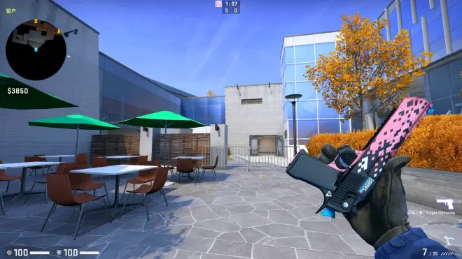 这把武器采用自定义涂装,枪管上绘制了粉色的等距图案。