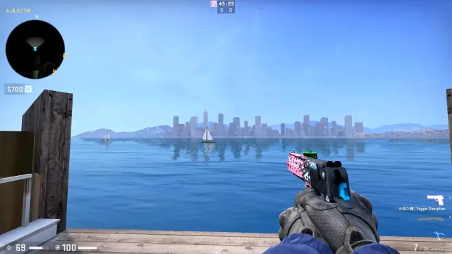 这款皮肤虽然是手绘风皮肤,但枪头的粉色部分自带有一定的高亮度效果,在光影不错的环境和地图中能获得更佳的观感