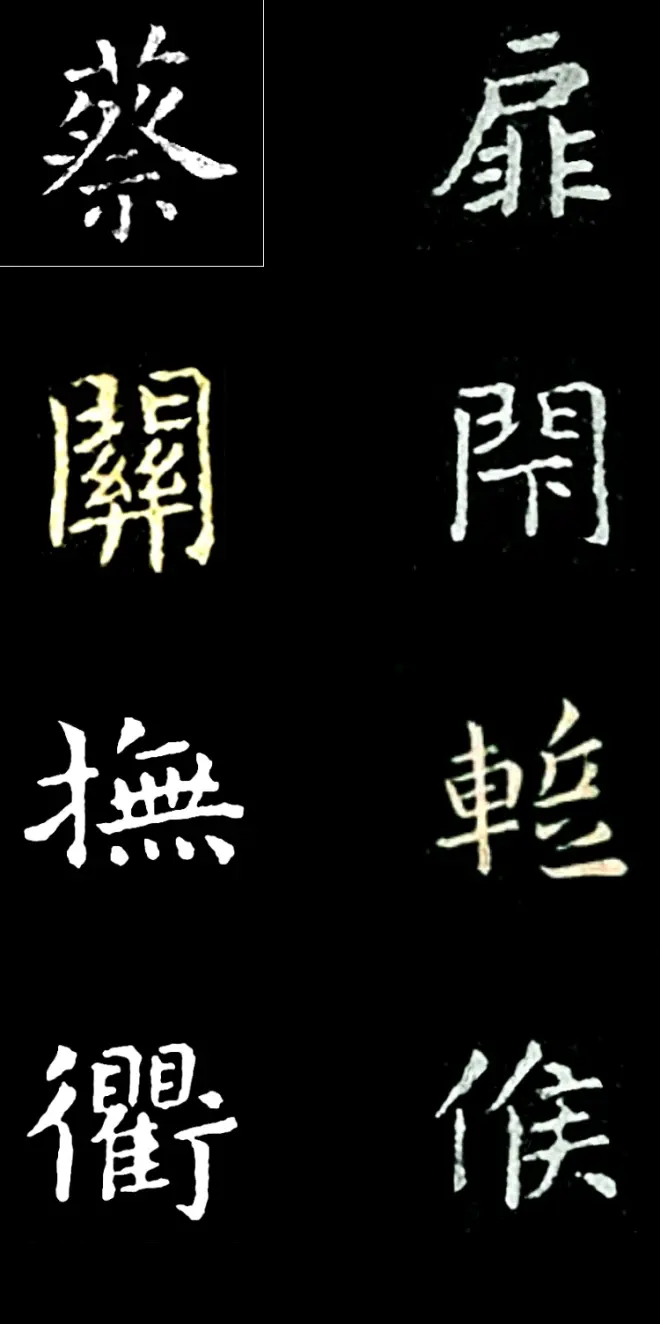 第一四〇頁(續真書千字文):扉(fēi) 閇(bì) 暫(zàn) 候(hòu) ,蔡(cài) 關(guān) 撫(fǔ) 衢(qú) 。