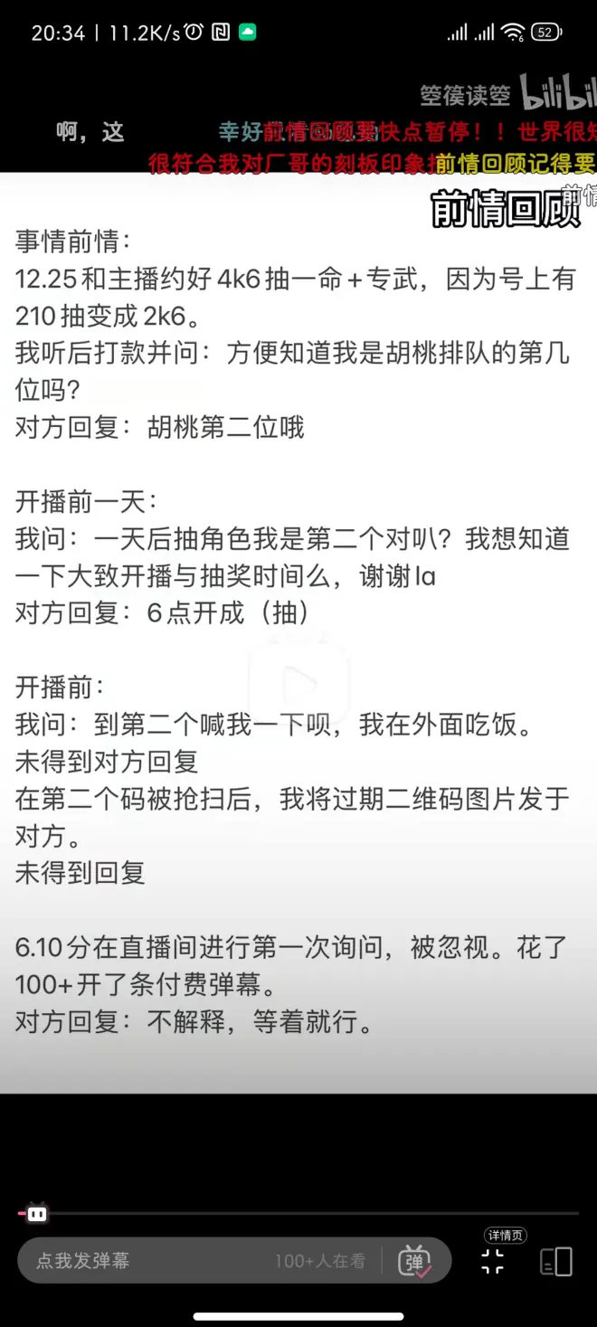 随后,箜篌于6点10分进入直播间开始询问主播代抽问题,甚至花了100+发了付费弹幕进行询问,得到的回答是不解释,等着就行。(其实在这个时候,也不是什么大问题。他好好跟箜篌解释一下,未必不能得到对方谅解,可惜他没有。)