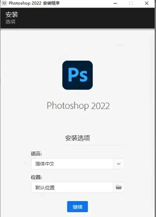 2、双击“Set-up.exe”,选择简体中文语言,自定义安装目录安装ps2022
