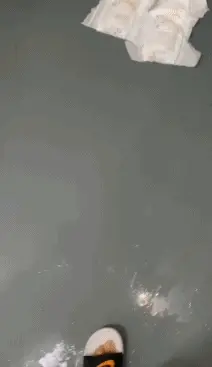 为了不弄坏整面墙,她只能把家里所有能吸水的东西都掏出来糊在墙上。