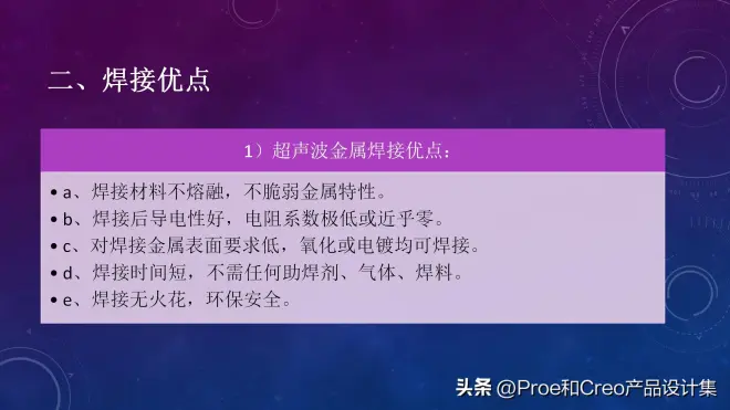 概念:超声波焊接是利用高频振动波传递到两个需焊接的物体表面,在加压的情况下,使两个物体表面相互摩擦而形成分子层之间的熔合。