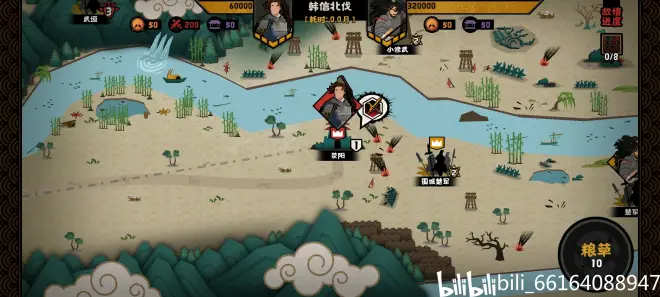 之后就该搞啥搞啥,刷出告灾后买步兵后又有粮草可以去刷一刷庙算,搞到60足矣。(别去走蒲坂)在夏阳时敌方有两个离谱的buff,但是我们的半场这有块小平原,因为不能用木罂缻渡水,所以我们就在这快上打(对面的额外buff如果是[获得投掷]就比较难打,如果是[获得援军]就还行,如果是[车悬]就相当来说比较简单)(但是我建议你在打夏阳之前要刷出额外的两张[移动])。