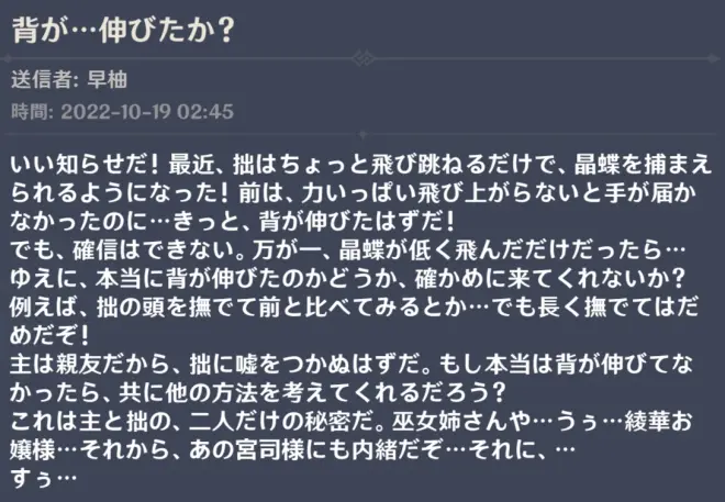 » 【原神】生日邮件(日语版)——2022年7月24日~12月31日