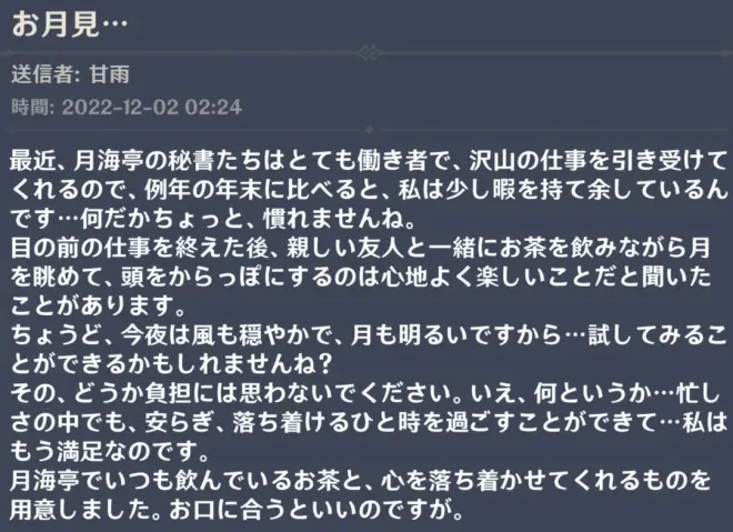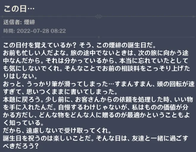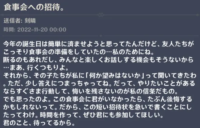 【原神】生日邮件(日语版)——2022年7月24日~12月31日