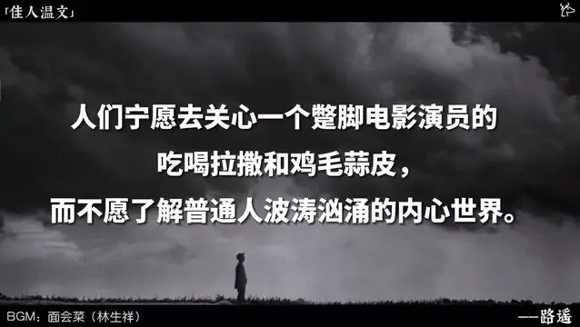 3.人们宁愿去关心一个蹩脚电影演员的吃喝拉撒和鸡毛蒜皮,而不愿了解普通人波涛汹涌的内心世界。