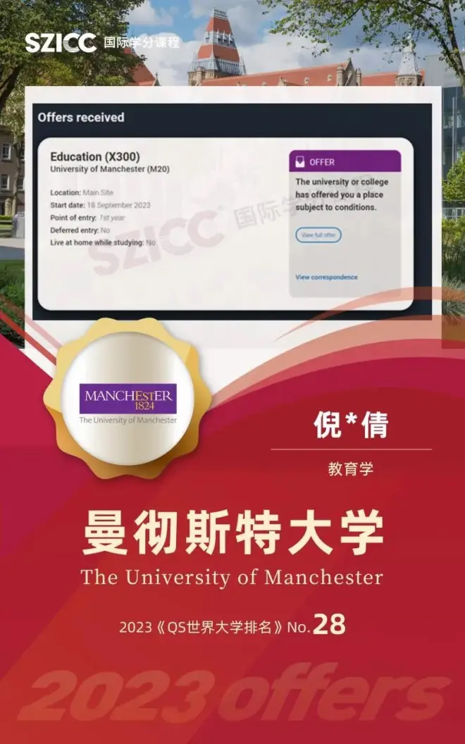SZICC学子再获曼大录取!G5、香港八大、全球top10录取更新!