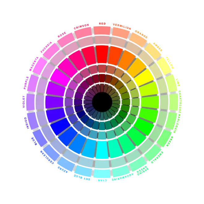 柔和感:在渐变时避免选择色轮上相隔过远的颜色.(从颜色类型以及明暗的程度去考虑)