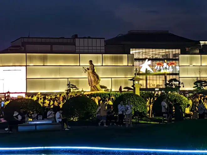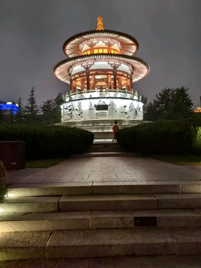 晚上去了西安的街(大唐不夜城),人依旧很多(毕竟免费的“景点”谁不白嫖呢),不过我倒不太喜欢这种地方,就是主干道很大,副道也不小,有一家挺大的购物中心以及大约三加小的购物中心,街边有一些表演,不过我不感兴趣,我并没有拍图。(顺便一说音乐喷泉9点才开)不过我拍了一张大雁塔和人多的盛状。