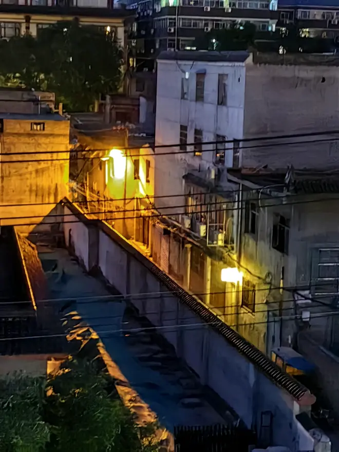 城墙上人很多,非常多。 不过城墙下的老城也别有一番风味,繁华中藏匿着不为人知的一角。顺便一说,中国到处都离不开广场舞,果真如此,被车灯点亮的黑暗道路也很美呢。