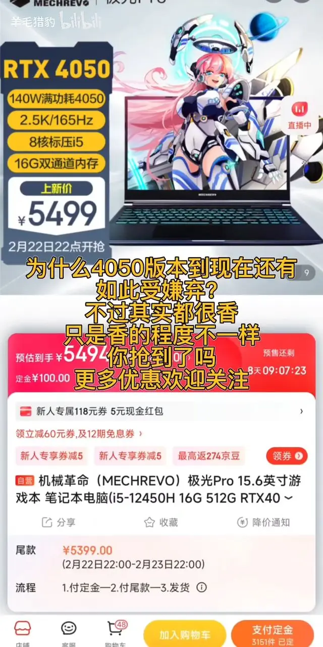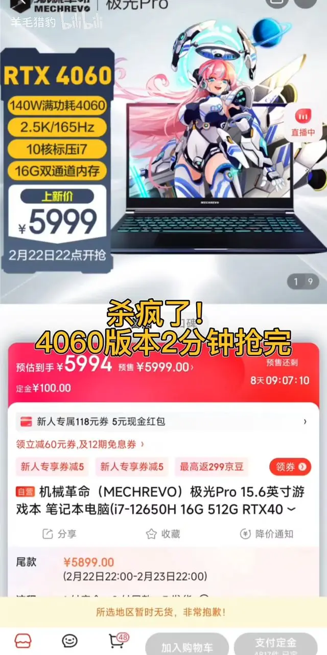 一:杀疯了!4060笔记本5999秒无,4050版本5499咋还有货?