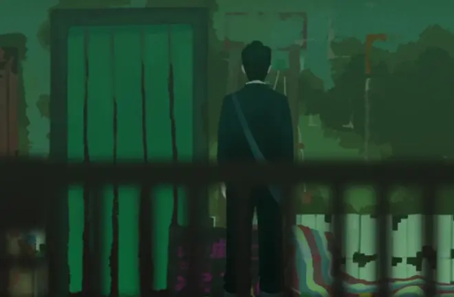 在我走过去的瞬间,电视屏幕随之亮起,画面像是监控的视角,其中场景赫然挂着“山城文化宫录像厅”的牌子。只是周边环境并不像我刚才路过时那样的残破。灯光,植物,放映的时间表,一切如新。画面的中心则是一个背对着我的女生,一身着黑,长发披肩。我不由得想起诸如电视机里的女鬼这样地摊恐怖小说的情节。