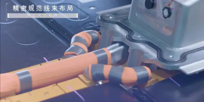 电池舱内,电芯按照日产全球高标准定制化专线生产,双层叠式模组具备独有双防撞保险杠,线束精密规范布局,周密装备,打造被动电池安全防护的第一道防线,将电池短路、起火、爆炸等风险掐灭在摇篮里。