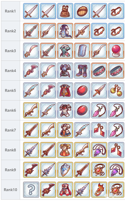 下图为rank1至rank10-5所需装备总览展示。
