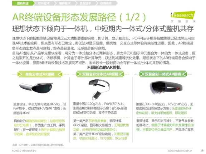 如果说元宇宙的火热为AR吸引了商业和资本的目光,人们对下一代计算平台和交互方式的不断探索将AR推向了风口浪尖,那么AR行业在技术、场景等方面数年的积累和从业者的坚韧会使他们在浪潮之下站稳脚跟、乘风破浪行业潜力:增强现实(AR)技术可将虚拟信息数据叠加在现实世界之上,兼具交互性、沉浸感、实时性等特征,短期内AR可作为效率工具使用,填补产业空白;长期来看,具有成为下一代计算平台的潜力。