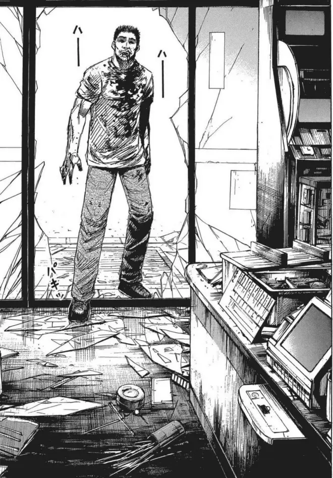 来到建太家后 在洗完澡后 大家就一起吃饭了 因为是末日所以也什么好吃的 也就一些罐头加一些米饭 但是就算是这样这也仍然是顿丰富的大餐 可能是洗过澡人也变得放松了 灰衣男子话也多了 表示自己叫宫本明 大家以后都是朋友了不必叫救世主了 建太表示想看看明的义肢 明也很大方就给他看了 建太看了义肢后大吃一惊 表示这是他这辈子见过最复杂的工艺 这制作义肢人一定是个高手吧 明笑了笑表示自己是拜托一个岛上的吸血鬼做的