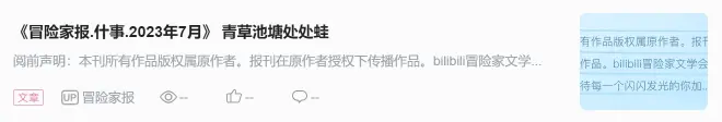 bilibili冒险家文学会还在成长期。