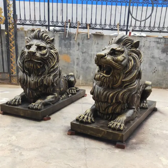 对于玻璃钢狮子雕塑来说,其仿铜效果是一个非常重要的特点,因为这使得狮子雕塑看起来更为古朴,给人以历史感和文化底蕴。此外,玻璃钢狮子雕塑由于采用了玻璃纤维复合材料,具有轻质、耐腐蚀、耐碰撞和防潮的特点,因此适合安装在室外,经受雨水、风吹和阳光的考验。