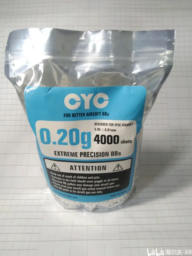 使用CYC 0.2克塑膠BB氣彈,初速為上