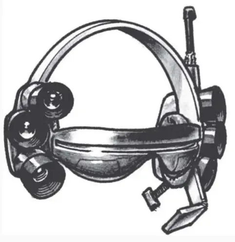 这款注塑防干扰头盔完整搭载了带有反射转换器,神经接口和多用驱动程序等功能的赛博碟台。头装™还包括了抬头信息显示器和无线电。它重约4-4.75Kg。您可以从本地微科经销商了解更多详细信息。(便携碟版,MU 10,速度+2,数据墙+2)。