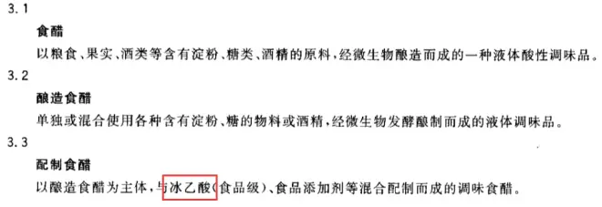 但是到了2019年新国标《食品安全国家标准食醋》(GB 2719-2018)里,剔除了配制食醋,也就是用食醋+冰乙酸勾兑的醋。