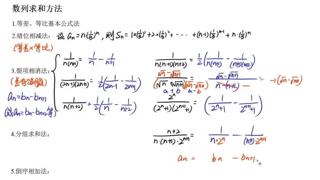 倒序相加法,考到的较少,若考察也就是考头和尾的一些特殊的项之和