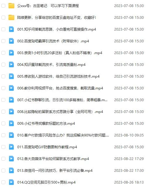 古圣也给大家准备了一套全网的引流思路,非常适合引流小白学习一下,都是实操落地后录制的经验,大家认真看完实操后绝对可以做到日引流几十人。