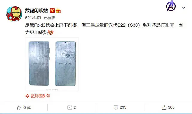 除了拍照能力之外,三星S22系列的外观设计可能也会令消费者失望,很有可能不会采用屏下镜头设计。