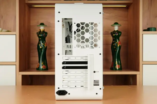 机箱背部则是常规的ATX布局,拥有1个12CM的风扇安装位以及7条PCIe扩展仓,不过只有其中的两条拥有复用挡板,其余均为一次性挡板,我个人还是希望乔思伯不要省这一点点的成本。