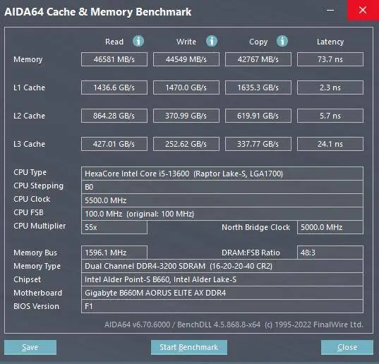 安装完毕电脑顺利开机,无蓝屏,无报错。通过AIDA64内存测试工具可以顺利检测出内存的数据,在默认频率下,朗科(Netac)绝影内存标准频率为2667 Mhz,内存读取速度达到39248MB/s,此时内存的延时为84ns,表现优良。