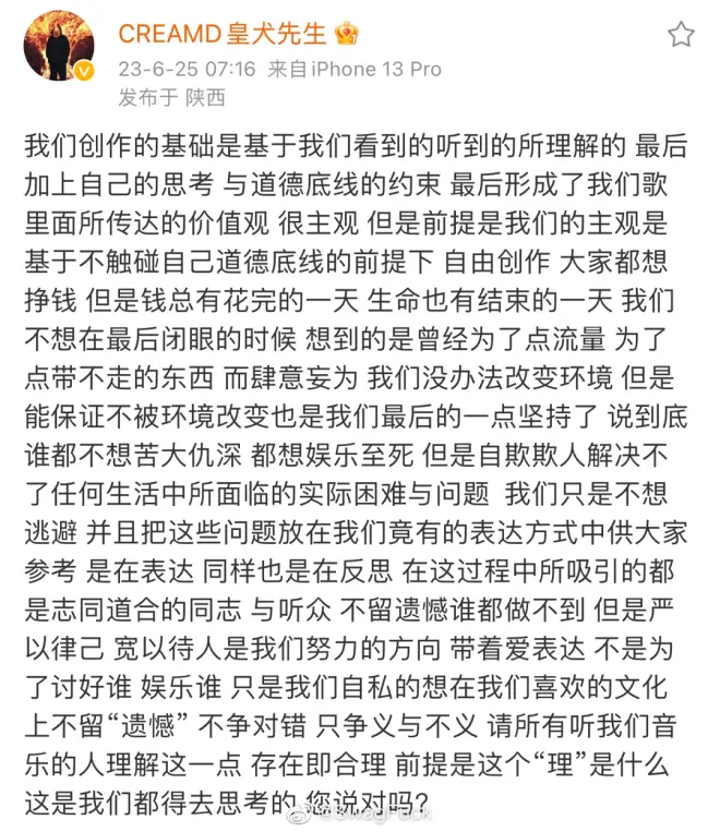 另一边,他们NOUS的小兄弟Cream D也长文发声: