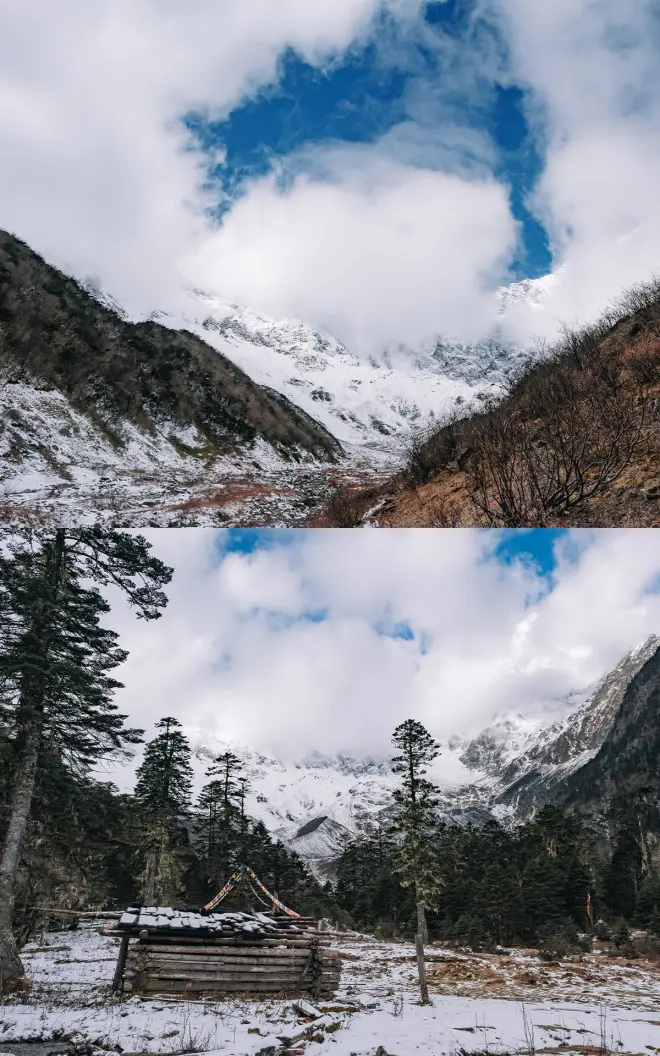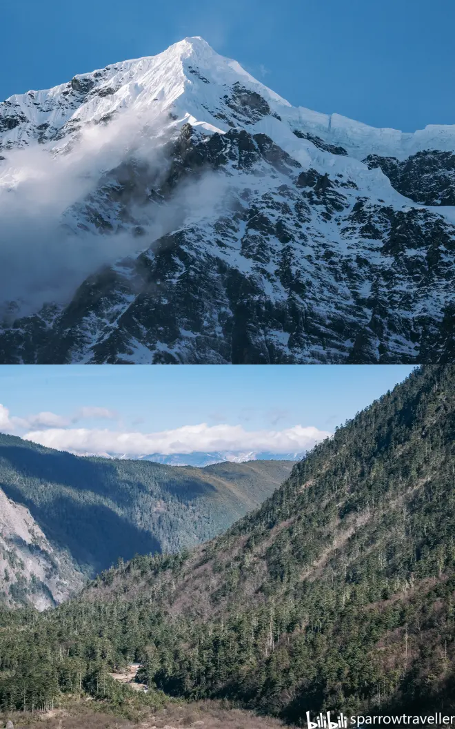 早上8:00离开客栈,起始段同冰湖路线一致,出了雨崩上村,经过沙棘林,过了笑农曲河之后,向右是冰湖路线,向左则是尼色线(冰湖路线上的笑农牧场那里也有路通往尼色拉古垭口)。尼色河牧场那里有一个岔路,左侧通往尼色拉古垭口,右侧通往冰洞,另外还有一个木屋,但木屋并不是每次都有人,我去的那天就是锁门状态。17:00回到客栈。