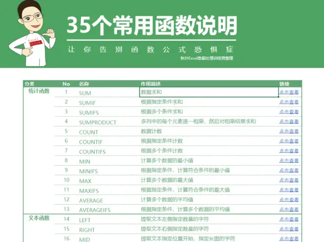 函数都附有【说明】+【案例】,非常适合函数小白使用!