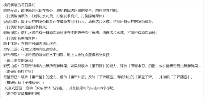 枫丹 每日委托名称: